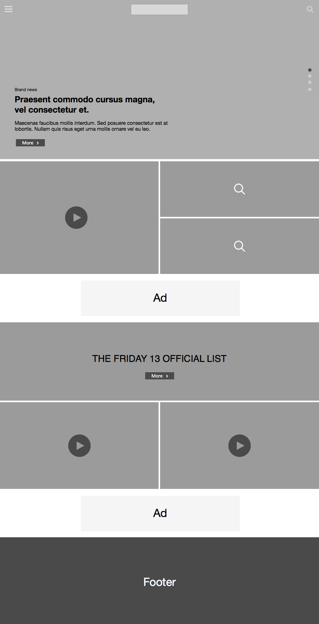 The hero carousel will then be followed by a masonry style grid, which will include additional imagery and links of latest episodes, shows, photos, etc. as well as advertisements.