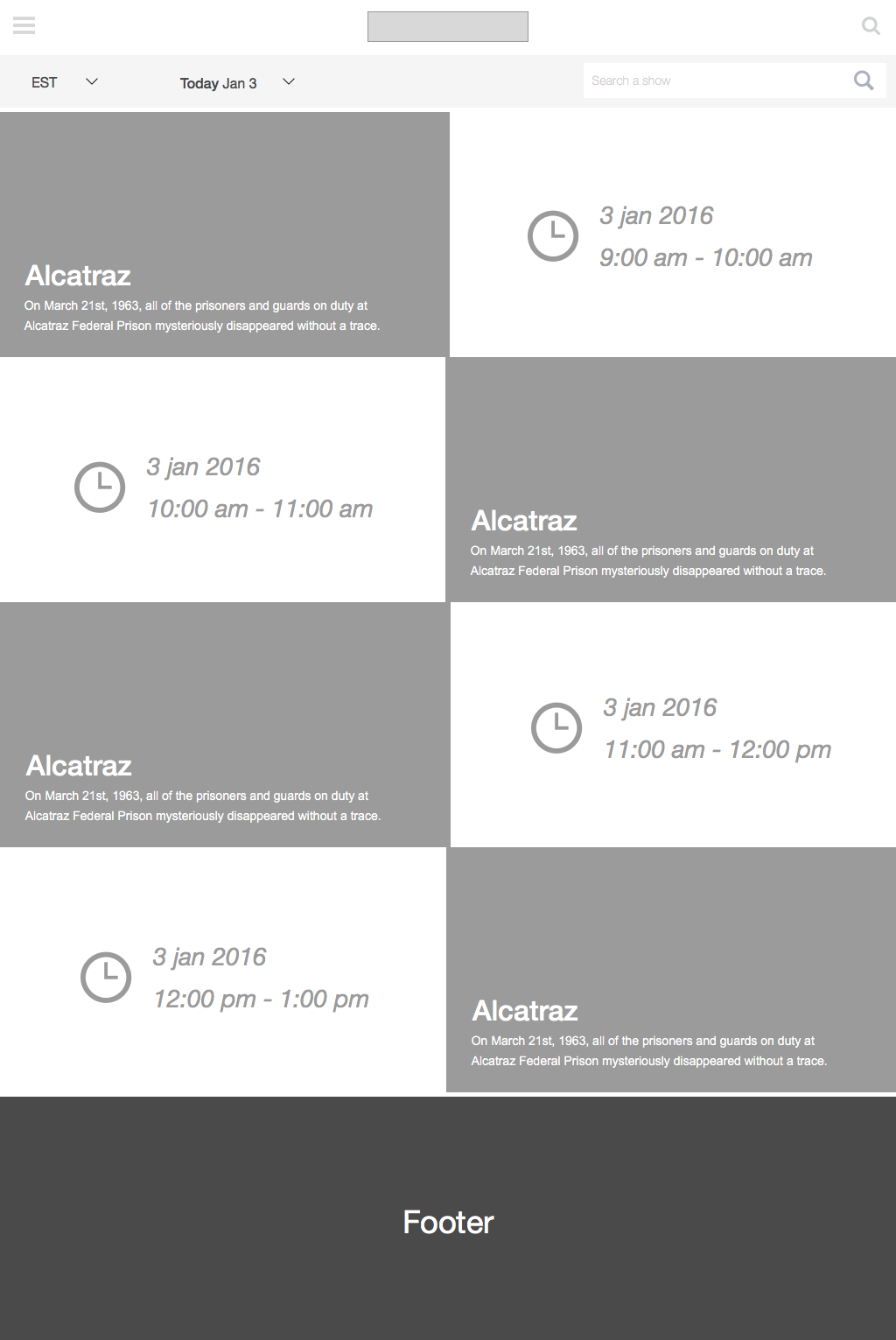 Schedule wireframe